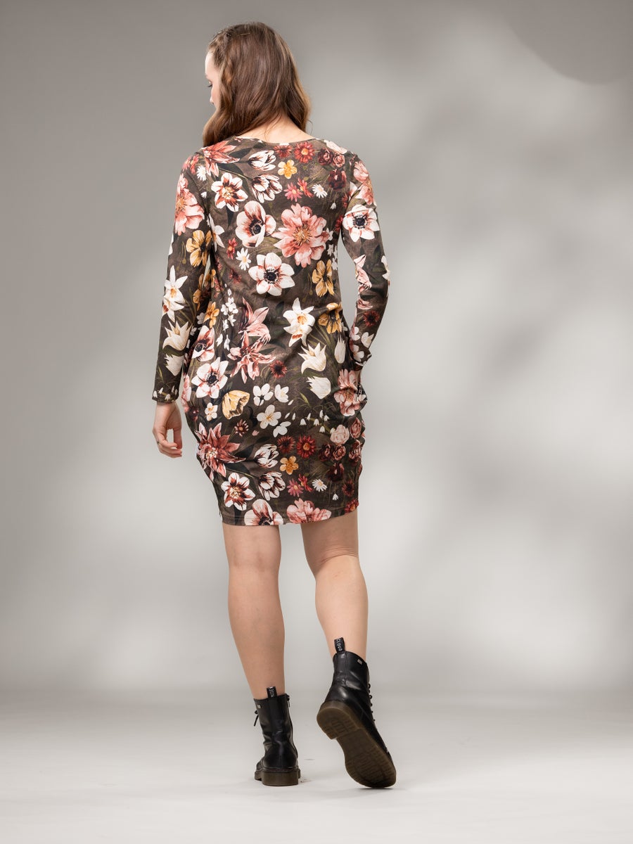 PIONImekko on mallistojemme ajaton klassikko! Tämä naisten mekko sopii mainiosti erilaisille vartalotyypeille. Pitkät hihat ja kauniin mallisella o-pääntiellä varustettu miehusta ovat hyvin istuvat, mekon keskiosa on ihanan väljä ja tilava. Pitkähihainen PIONImekko kapenee sirosti helmasta tuoden sääret kauniisti esille. Sivusaumoissa on taskut. Yhdistä kesällä tähän vilpoisaan, auringolta suojaavaan trikoomekkoon bikersit ja kylmemmillä säillä esimerkiksi sukkahousut, leggingsit tai kapealinjaiset housut sekä farkkutakki. Myös vyöllä saat asustettua tämän suosikkimekon mainiosti.