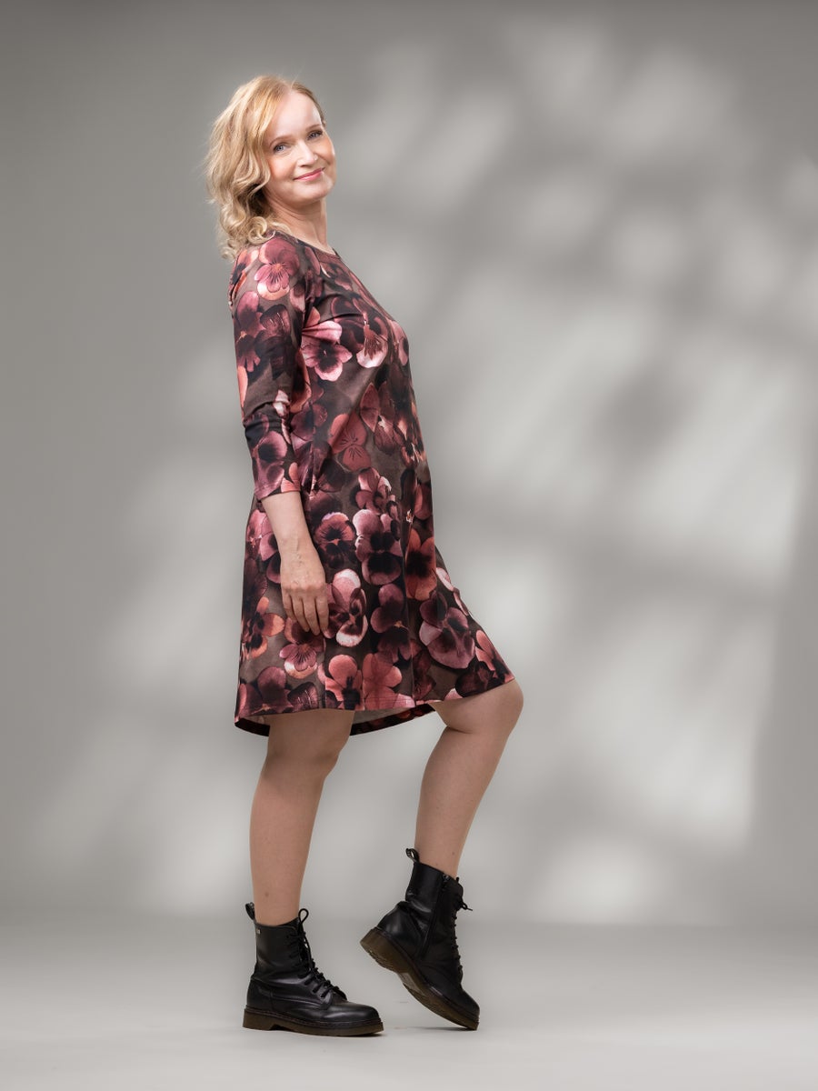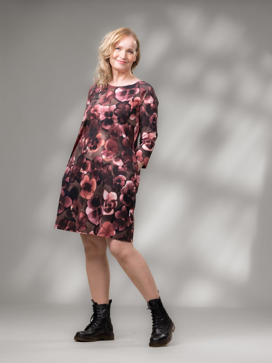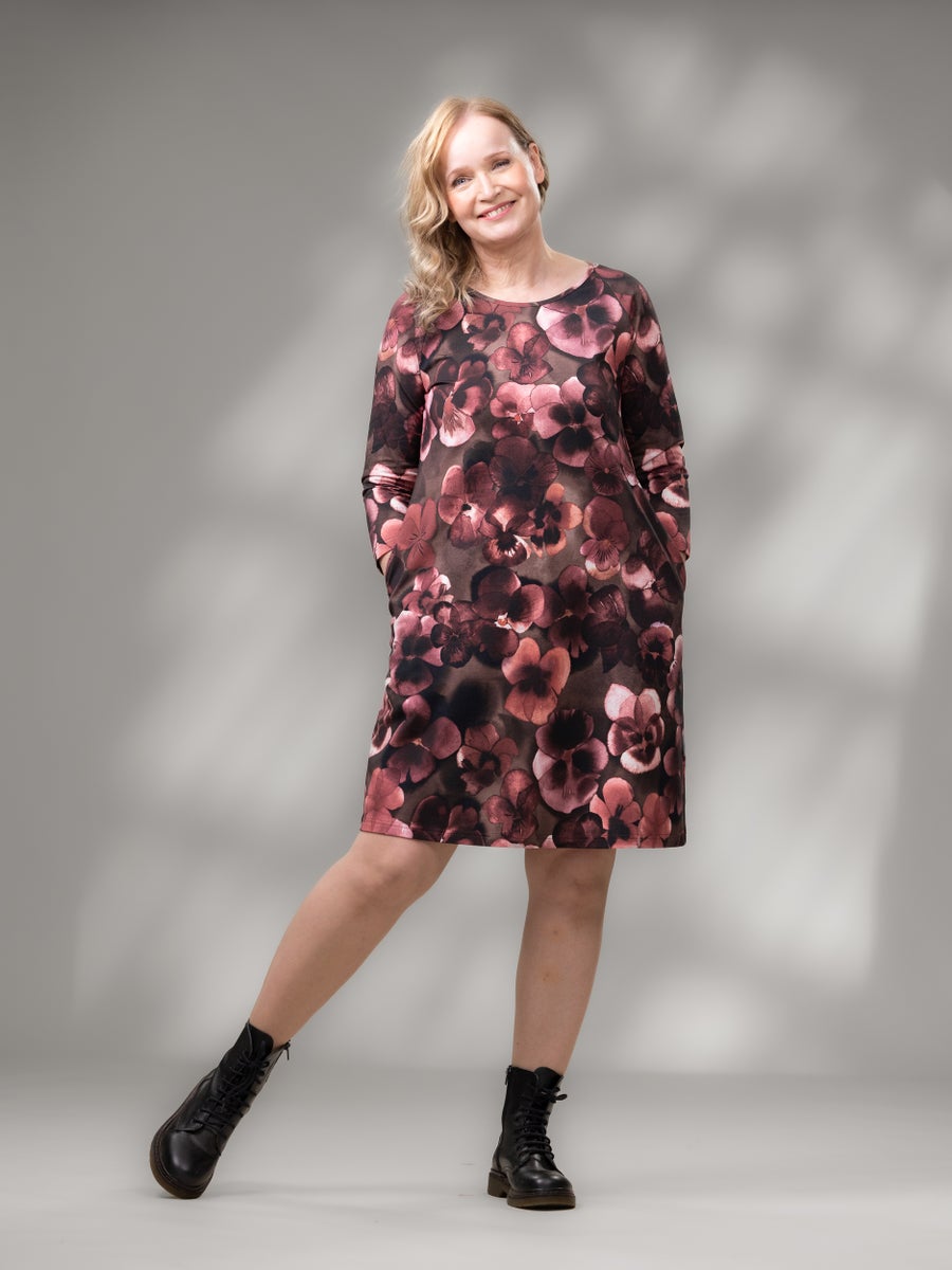 VERSOmekko on kaunis, a-linjainen trikoomekko, jossa on hyvin istuvat 3/4-pituiset raglanhihat ja kauniisti kellottuva helma. VERSOmekon käyttöaika on pitkä, sillä kesällä se on 3/4-pituisten hihojen ansiosta mainio, käsivarsien ihoa hyvin suojaava kesämekko. Kylmemmillä säillä VERSOmekon kaveriksi on hyvä pukea esimerkiksi sukkahousut tai leggingsit ja collegetakki tai neuletakki. Asusta mekko tyylisi mukaan arkeen ja juhlaan, koruilla, huivilla, vyöllä ja laukulla! Mekon sivusaumoihin on upotettu taskut, jotka tuovat käyttömukavuutta tälle monikäyttöiselle lempivaatteelle. VERSOmekko on suosituimpia mekkojamme ja sitä löytyy useissa kuoseissa. Kokeile ja ihastu sinäkin tähän klassikkoon!