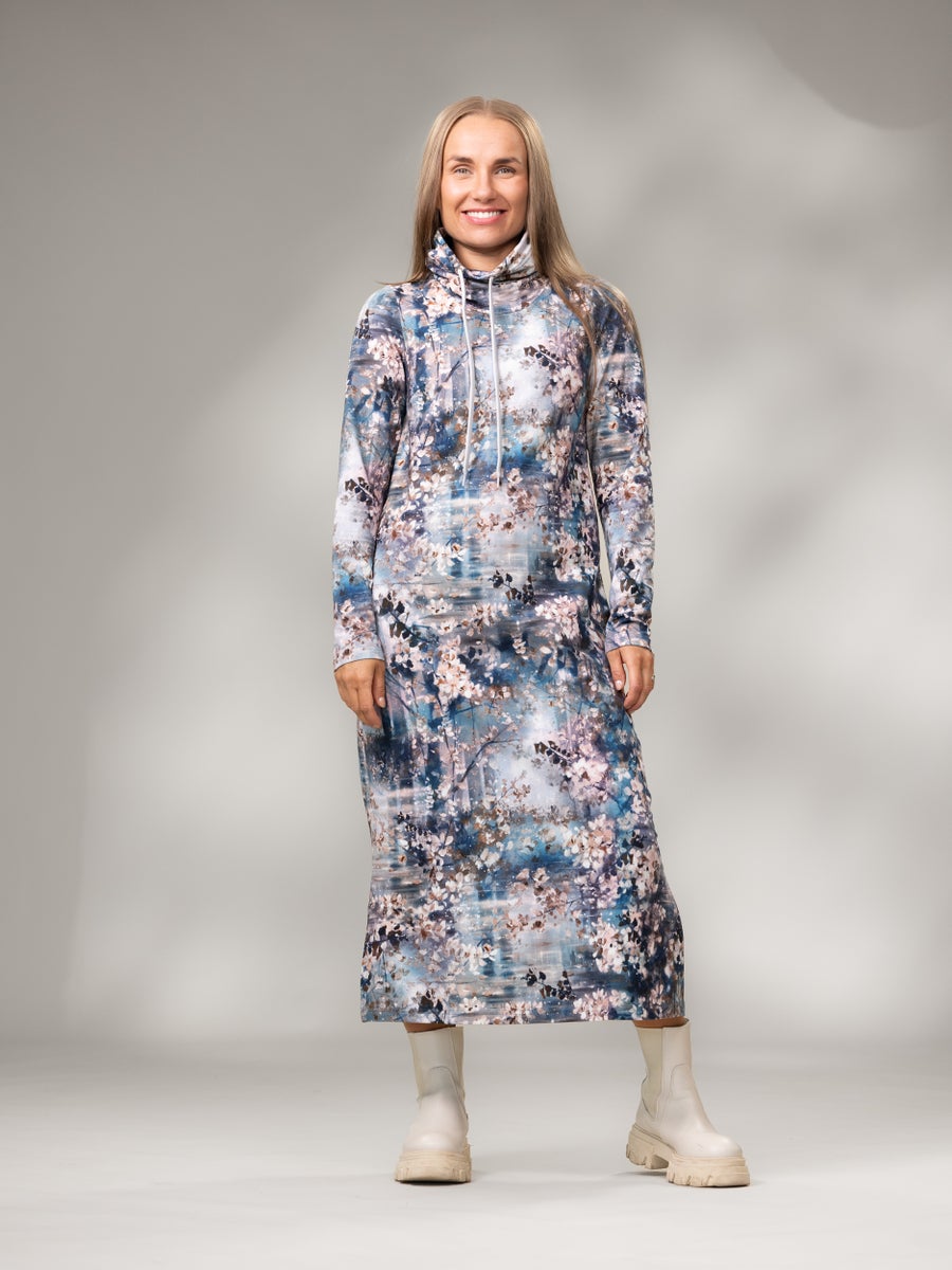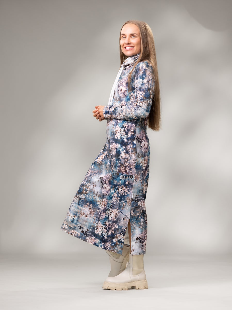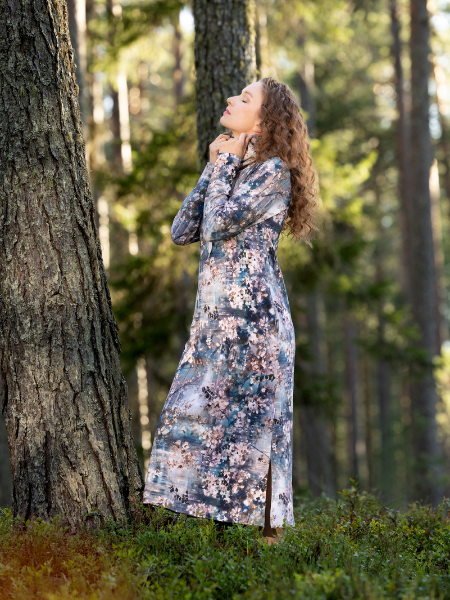 Tyylikäs ja miellyttävä pitkähihainen joustocollegemekko, jossa on trendikäs halkioin varustettu helma. Korkea tuubikaulus ja nyörit tuovat lisää ilmettä tälle ihanan ilmavasti istuvalle pitkähelmaiselle collegemekolle. TAUKOmekko sopii täydellisesti rentoihin päiviin ja asustamalla sen voi hyvin pukea myös juhlavampaankin menoon. Rintamuotolaskokset tuovat istuvuutta etukappaleella ja sivusaumojen taskut viimeistelevät käyttömukavuuden.