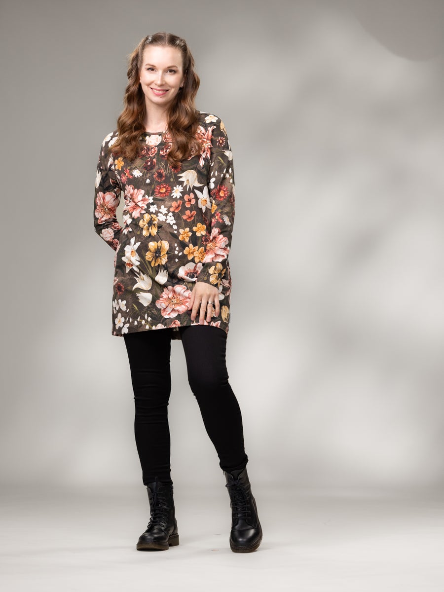 Ihanan rentoa mitoitusta oleva suoralinjainen Laatikkotunika on vaatekaapin perustuote. Tämä tunika pelastaa sellaisenkin päivän, kun kehosi ei halua vaatteen kiristävän tai puristavan. Sivusaumoissa on käyttömukavuutta tuovat taskut ja helmassa on sopivasti pituutta. Yhdistele jeggingseihin, erilaisiin housuihin ja kesällä sekä shortseihin että bikerseihin. Lyhyemmillä käyttäjillä leggarit ovat myös mainio pari tälle tunikalle. Valitse ihanista kuoseista oma suosikkisi!