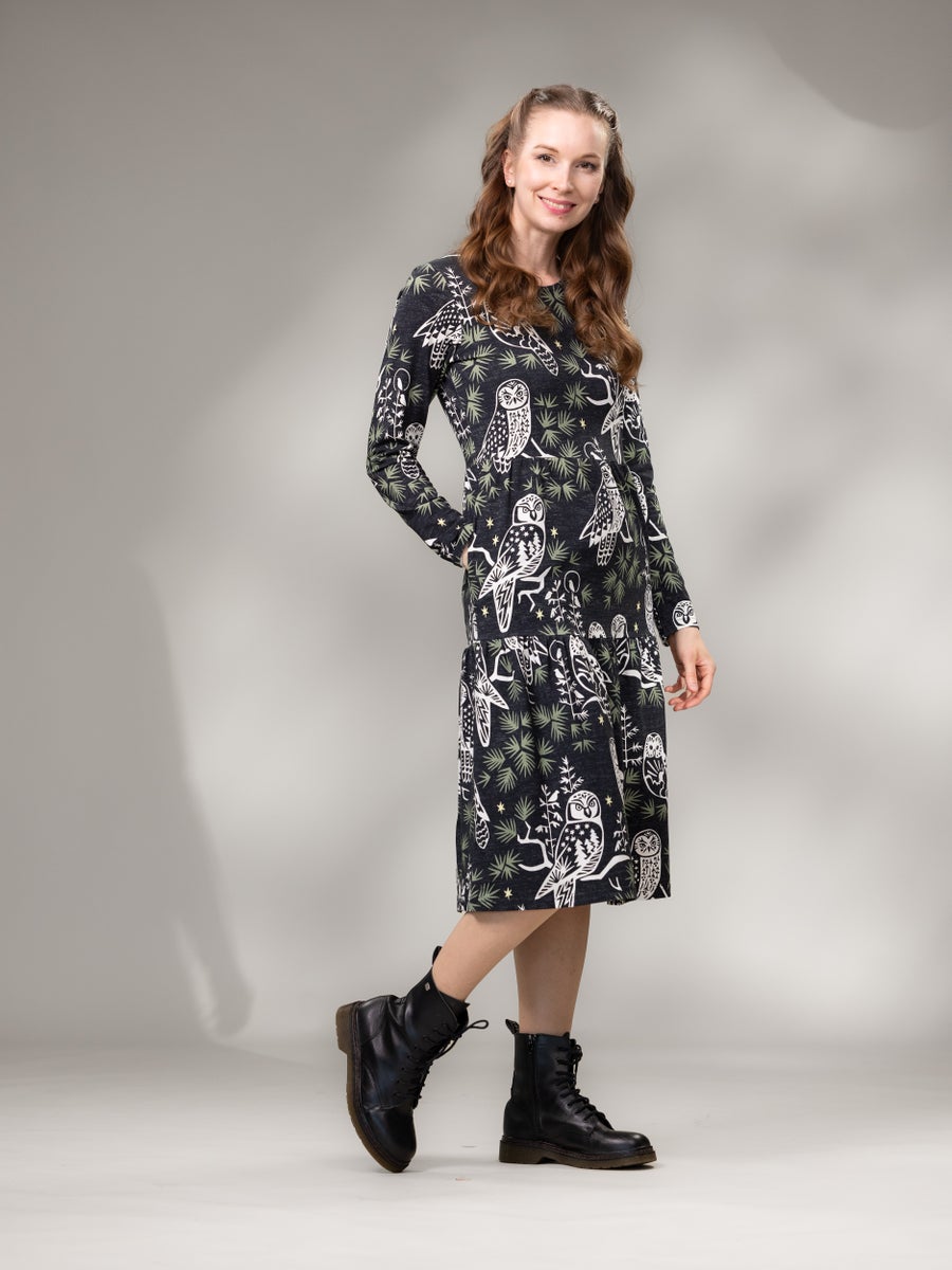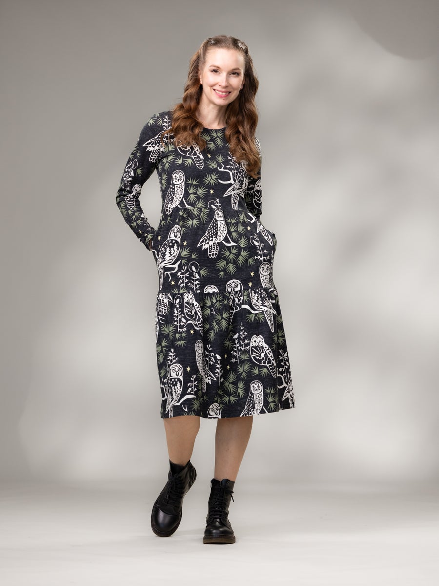 VILMAmekko on toivottu lähes midimittainen kerrosmekko. Siinä on istuva yläosa, kaunis o-pääntie ja väljät, pitkät hihat. Kerrostettu, polven alapuolelle ulottuva frillahelma on kauniisti poimutettu. Sivusaumoissa on taskut. VILMAmekko on helppo asustaa erilaisiin tilanteisiin ja tilaisuuksiin sopivaksi. Tämä trendikäs mekko on todellinen vaatekaapin kulmakivi arkeen ja juhlaan!