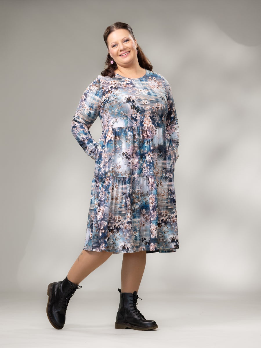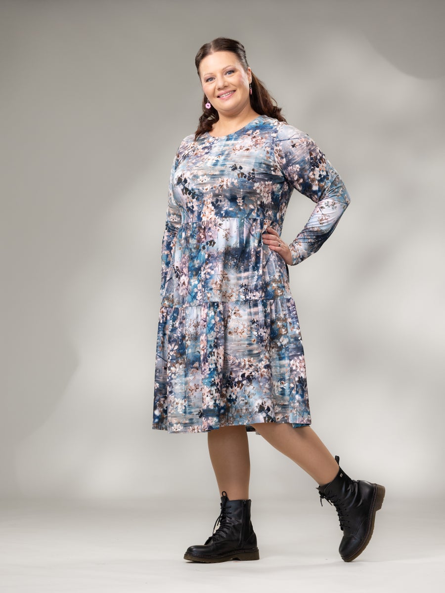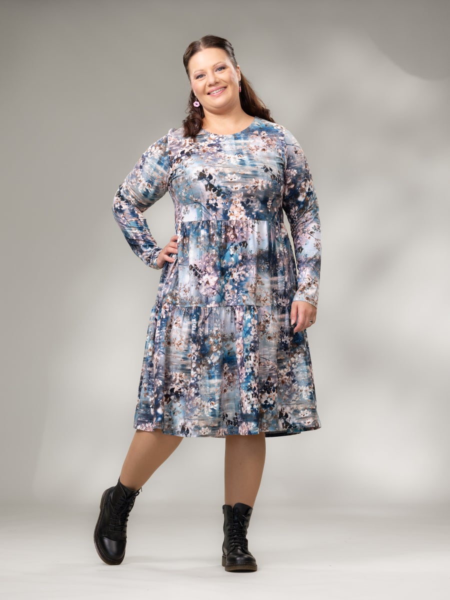 VILMAmekko on toivottu lähes midimittainen kerrosmekko. Siinä on istuva yläosa, kaunis o-pääntie ja väljät, pitkät hihat. Kerrostettu, polven alapuolelle ulottuva frillahelma on kauniisti poimutettu. Sivusaumoissa on taskut. VILMAmekko on helppo asustaa erilaisiin tilanteisiin ja tilaisuuksiin sopivaksi. Tämä trendikäs mekko on todellinen vaatekaapin kulmakivi arkeen ja juhlaan!