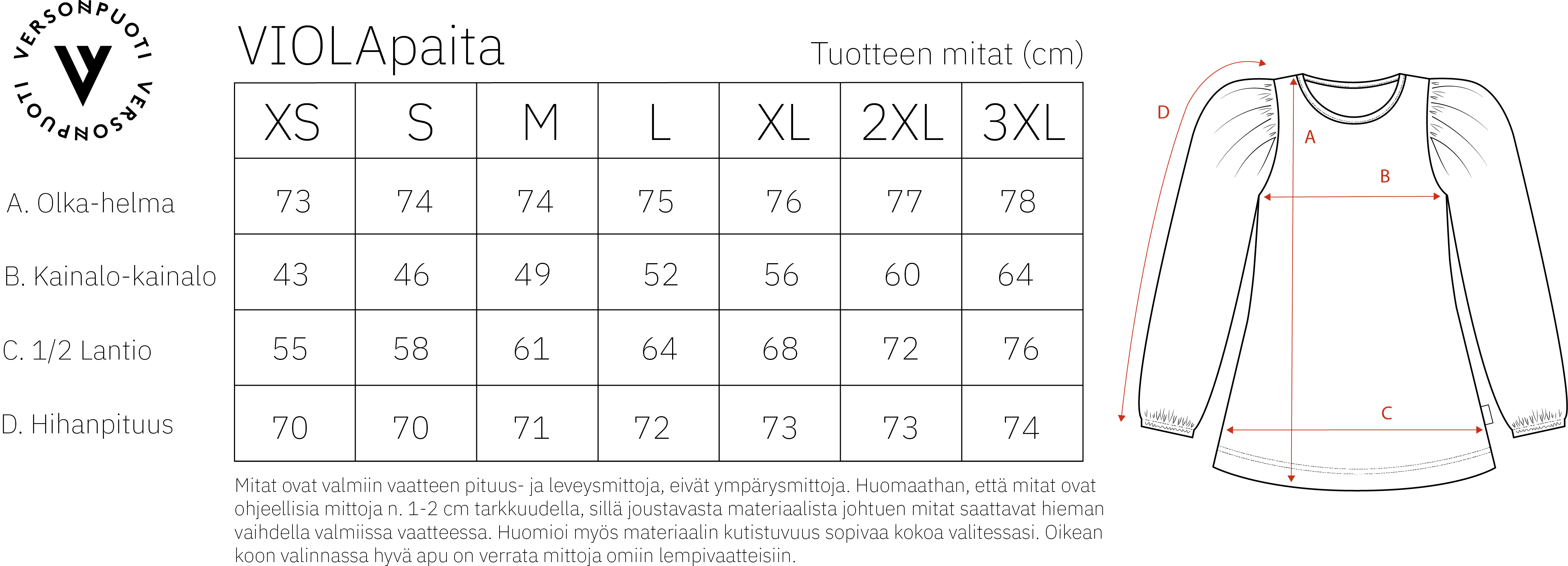 Kauniisti A-linjainen helma on hieman tavallista pidempi ja korostaa vartalon muotoa tyylikkäästi. VIOLApaita on täydellinen parin monenlaisten housujen kanssa.