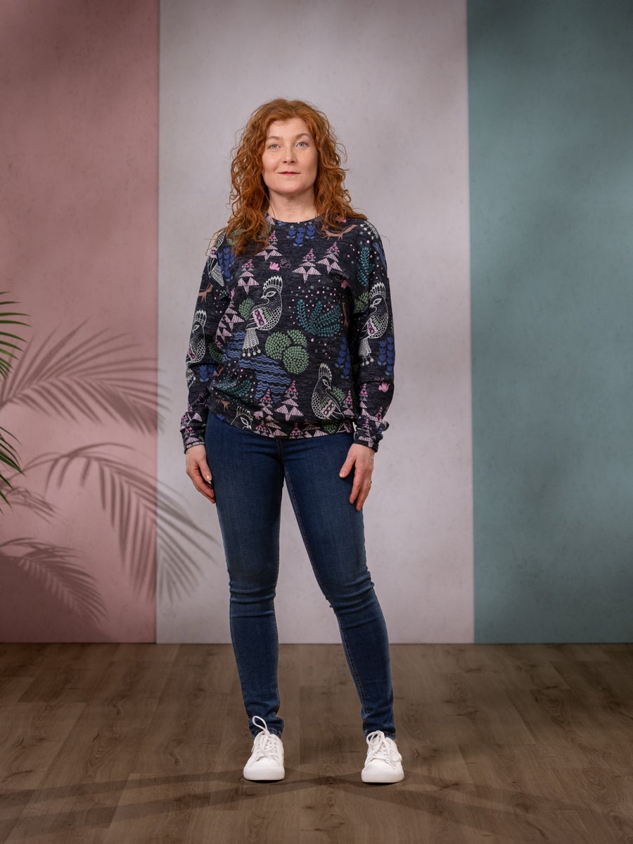 Naisten väljä, oversize-henkinen collegepaita pyöreällä pääntiellä ja alaslasketuilla hihoilla. Hihansuissa ja helmassa on käytännölliset resorikaitaleet. Yhdistele erilaisiin housuihin ja hameisiin tyylisi mukaan.