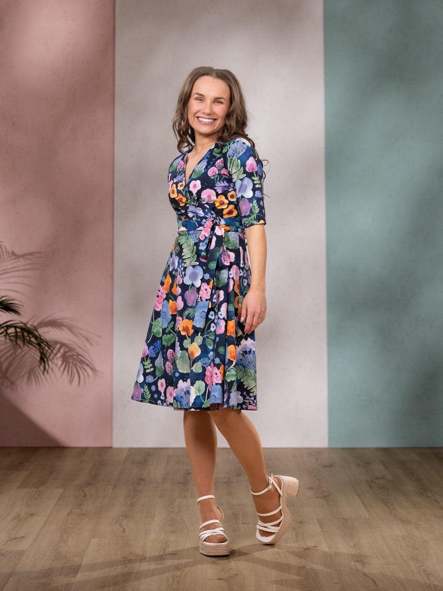 Naisten upea kietaisumekko! Lydiamekossa on kauniisti laskeutuva polvipituinen helma ja puolipitkät hihat. Vyötärön ympärille kiedottavan vyön ansiosta tämä tyylikäs mekko sopii kaikille vartaloille. Asusta tyylisi mukaan arkeen ja juhlaan!