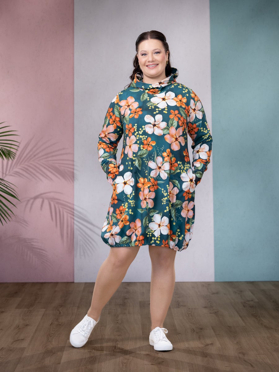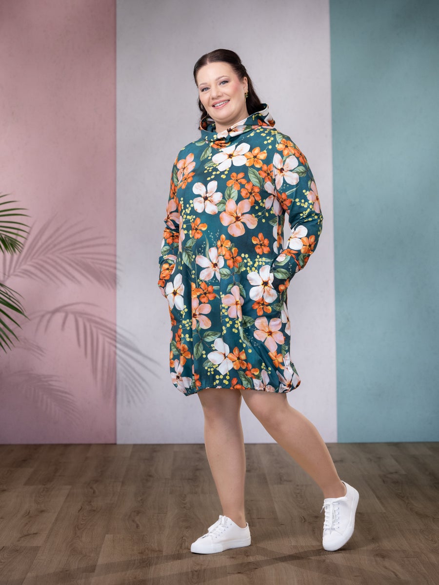 Upea, lähes polvipituinen hupparimekko on monikäyttöinen mallistojemme klassikko! Mallinsa ansiosta JEMMAmekko sopii monille vartalotyypeille ja taipuu hyvin erilaisiin pukeutumistyyleihin. Helmassa on väljyyttä kauniisti kokoava kuminauha ja sivusaumoissa käyttömukavuutta tuovat taskut. Huppu lämmittää ja suojaa tarvittaessa. Vyötärön kohdalta tämä pitkähihainen trikoomekko on toista saman tyylistä tuotettamme, YHDESSÄmekkoa, vähän väljempi ja malliltaan myös hieman suoralinjaisempi. Sirot ja pitkäresoriset hihat tuovat keveyttä kokonaisuuteen. Valitse useista kuoseista oma suosikkisi!