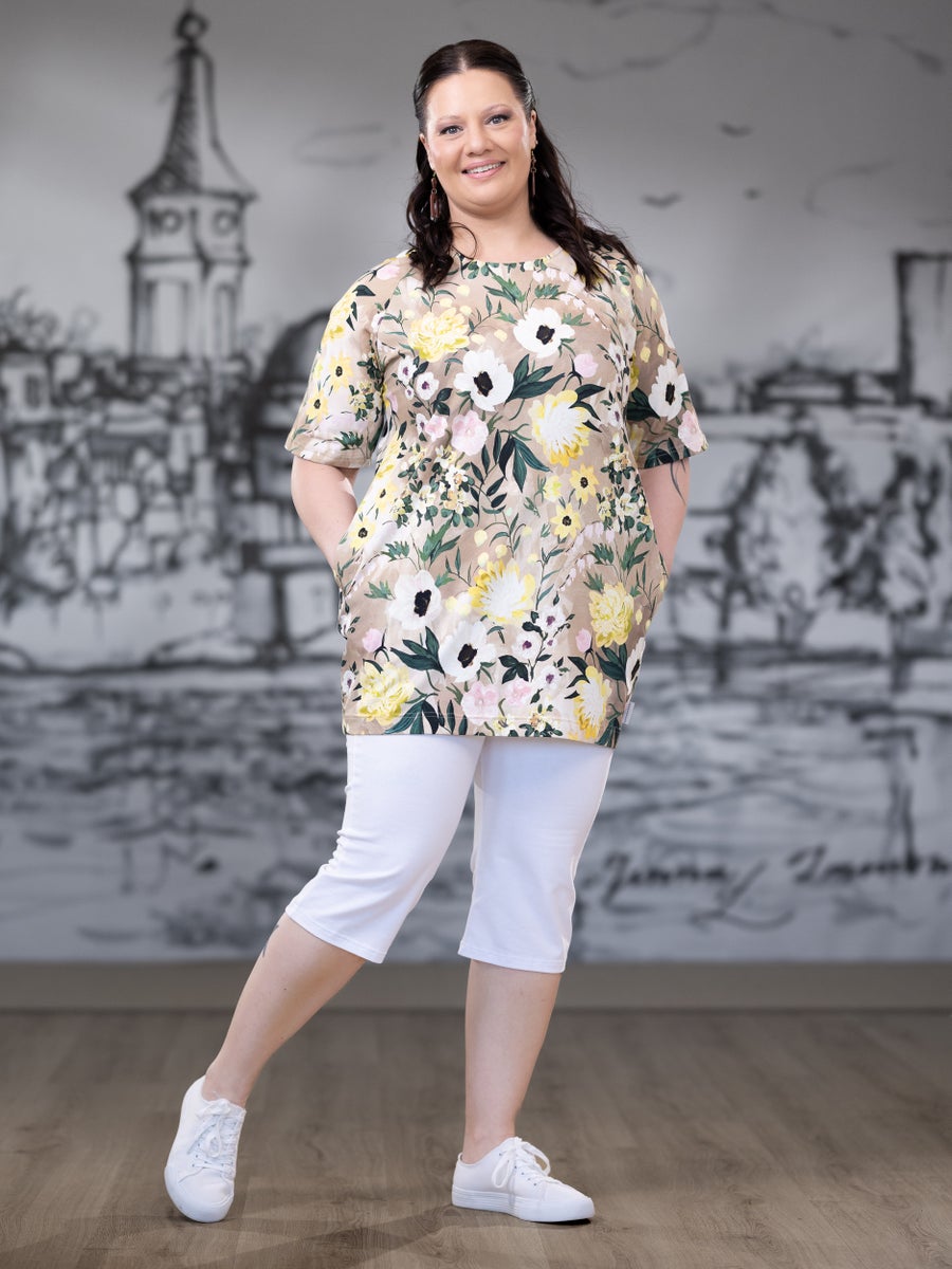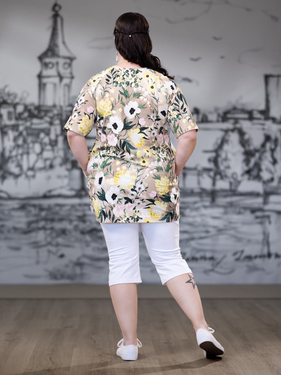 SAARAtunika lyhythiha (Kuningatarkukka keltainen / beige trikoo)