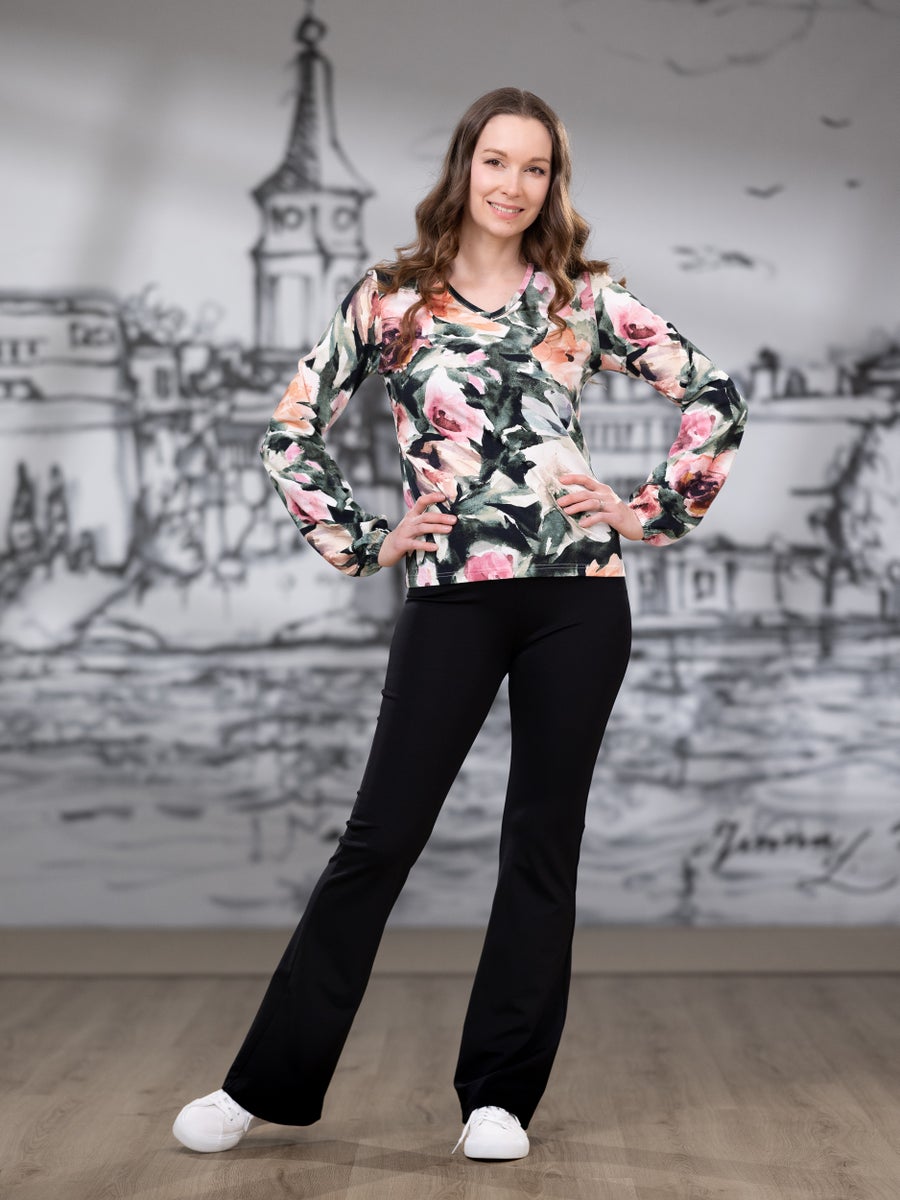 - Naisten levenevälahkeiset housut